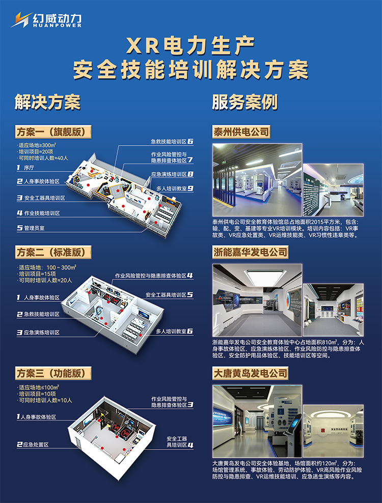 1.沉浸式教学:VR技术1:1还原真实的不停电作业操作场景,结合声效、光效、粒子特效,强烈的代入感使人沉浸的电力作业现场;多角度切换,强化记忆,深化标准作业流程;真实事故案例剖析,形成视觉、听觉、触觉冲击,自主提高安全意识;