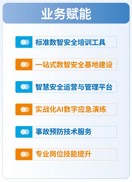 公司依托创新技术,助力企业在标准数智安全培训工具、一站式数智安全基地、智慧安全运营与管理、实战化AI数字应急演练、全方位事故预防服务、专业岗位技能培训等领域实现模式突破。