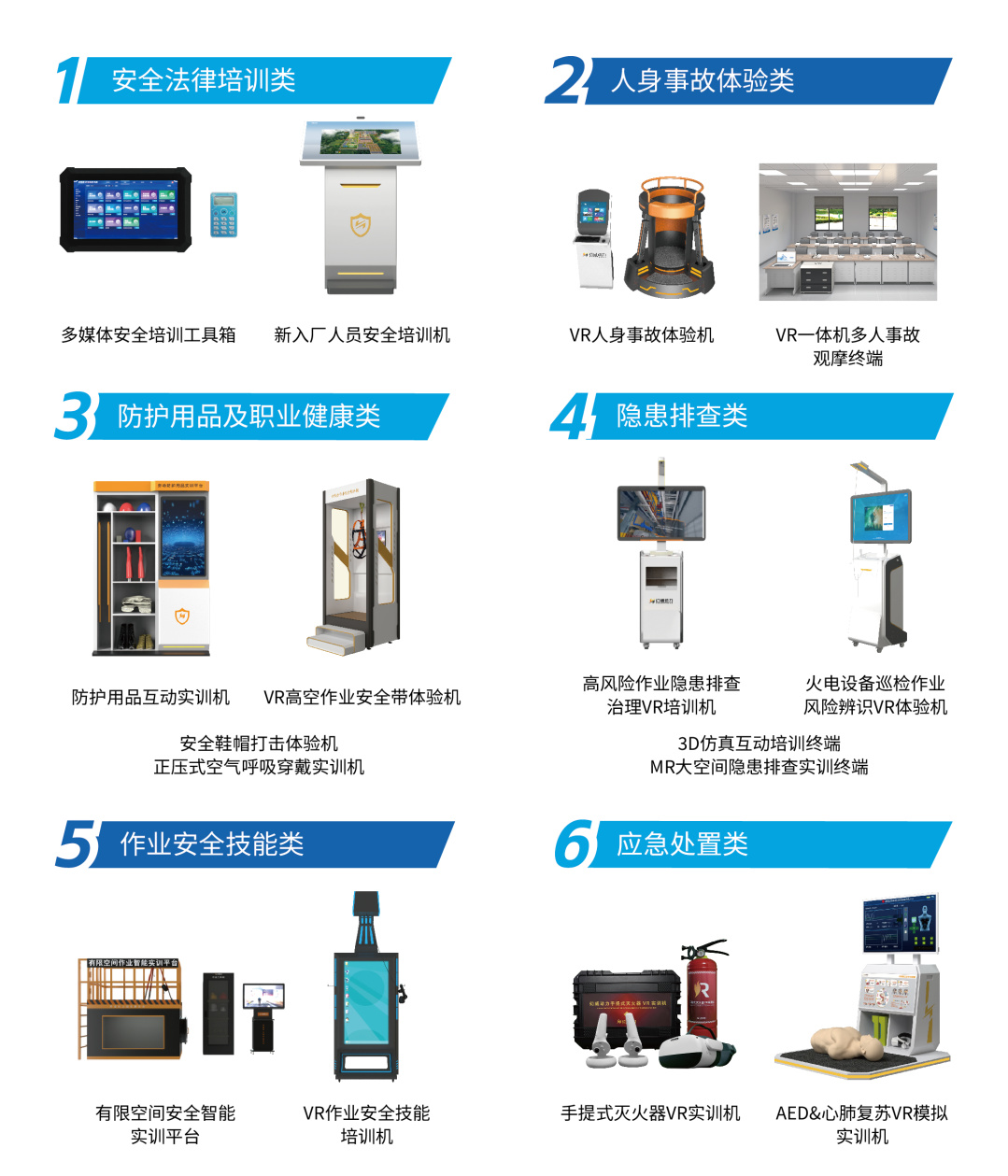 对应政策“预防优先”理念。我们通过300+标准化安全培训工具(如:VR人身事故体验、劳动防护用品实训机、火电职业健康培训等),让安全规范不再是枯燥的文字,而是可反复体验、可量化考核的实战技能。让员工在“亲身”经历中,将红线意识和底线思维根植于心,从源头扼杀风险。